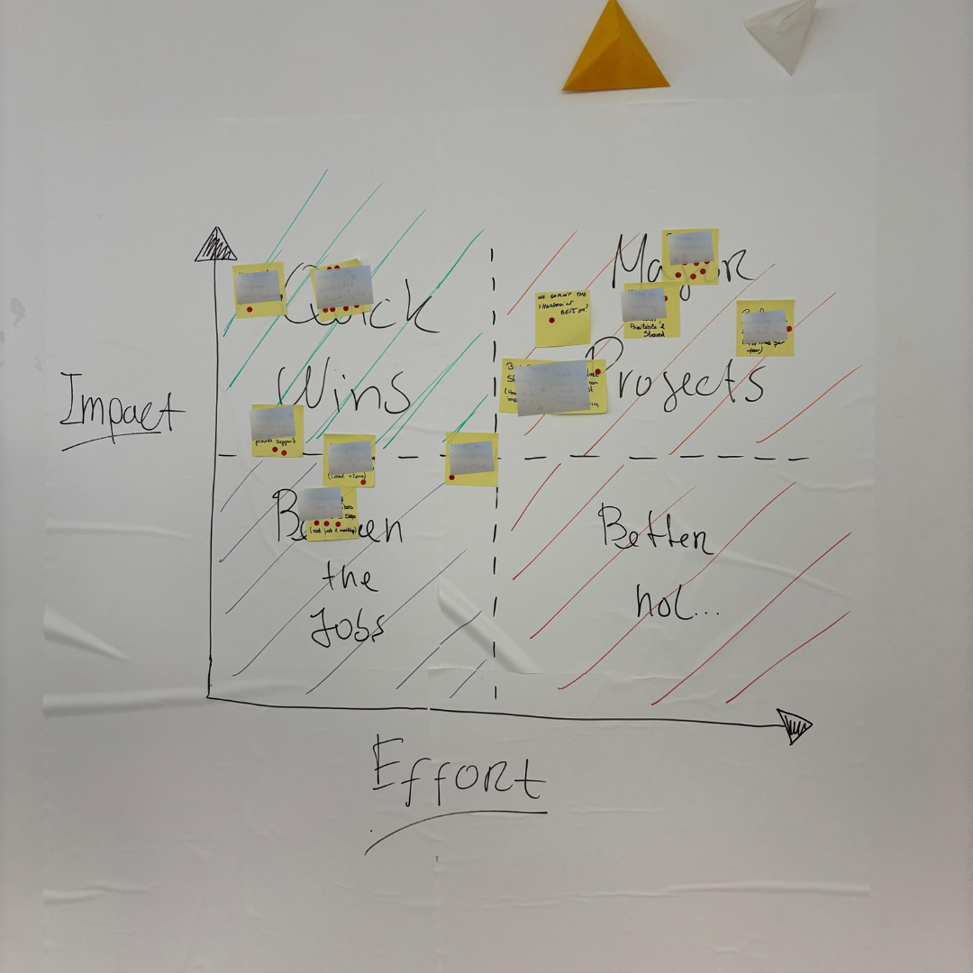 We used methods like the ‘Together but Alone’ work mechanic to reduce debate and ensure individual input; and exercises such as ‘Note & Vote’ to help the team prioritize ideas efficiently and objectively.